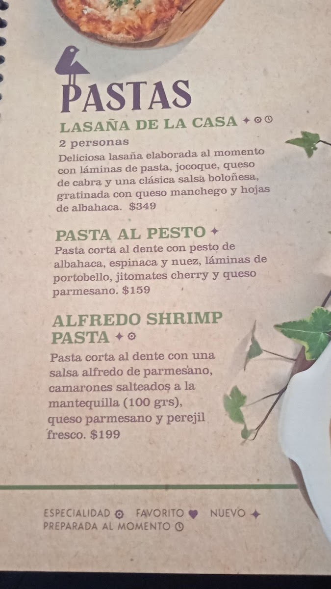 Salsa Alfredo, queso manchego, cebolla morada, espinacas salteadas, champiñones y tocino.